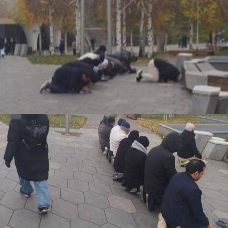 Намаз или флэшмоб: Москва, Парк «Зарядье» ноябрь 2025-го... Это фото свежее. На нем мы видим, как несколько человек совершают намаз. Что здесь примечательного. Тот кто знает парк Зарядье, тот понимает, что люди разместились в самом проходом его месте. Причем...